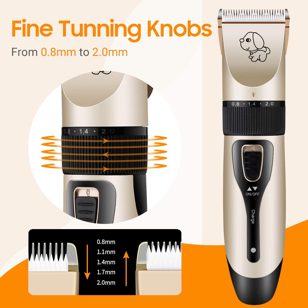 - 4 Guard Combs (3mm/6mm/9mm/12mm): provide more choice of pet hair cutting lengths and trimming depth. With leveled comb, your pet's hair will be trimmed perfectly even. Skin-friendly contour-following design makes it safe, easy, comfortable. Fine-tuning knob offers five level of length (0.8-2mm) for precise adjustment on hair length.
