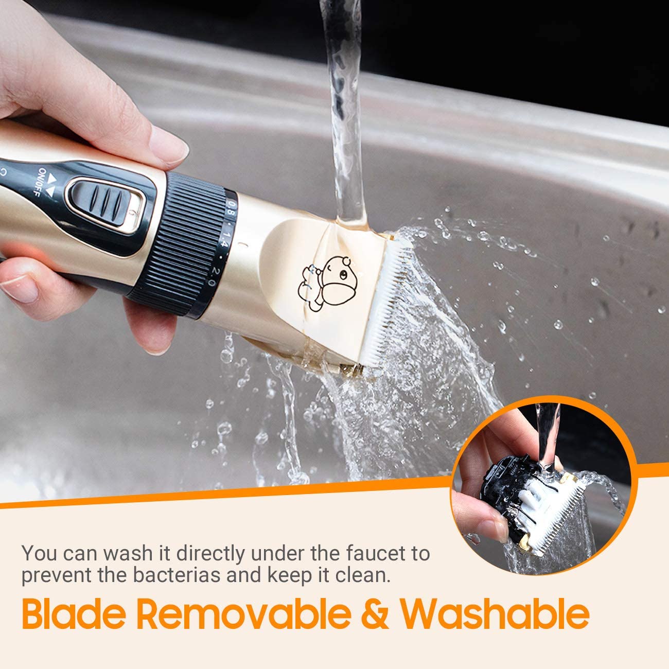 - Detachable Safe and Sharp Blade: The blade is made of ceramic and titanium, which ensures safety without losing its sharpness, and it will not rust and does not heat up which ensures high durability and provide excellent cutting performance. It fits for hairy, thick or soft hair dogs, cats or rabbits.