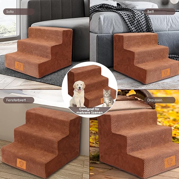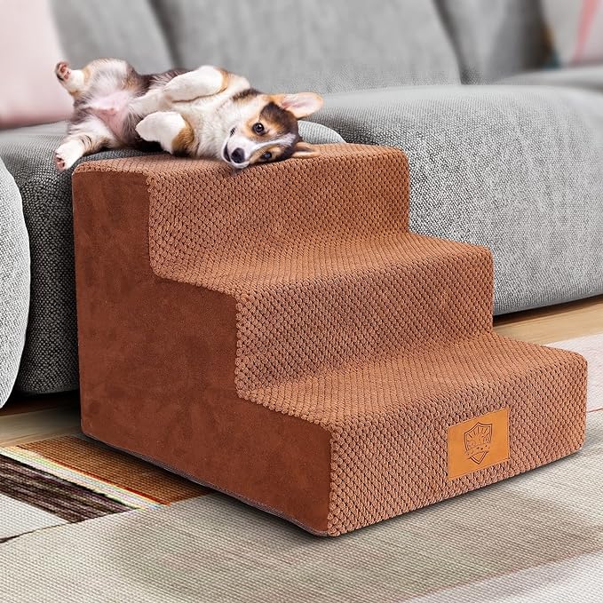 - سلالم الكلاب ذات الثلاث خطوات - يساعد التصميم ذو الثلاث خطوات حيواناتك الأليفة على الوصول إلى الأماكن الأعلى مثل الأسرة والأرائك. ويقلل من خطر قفزهم.
