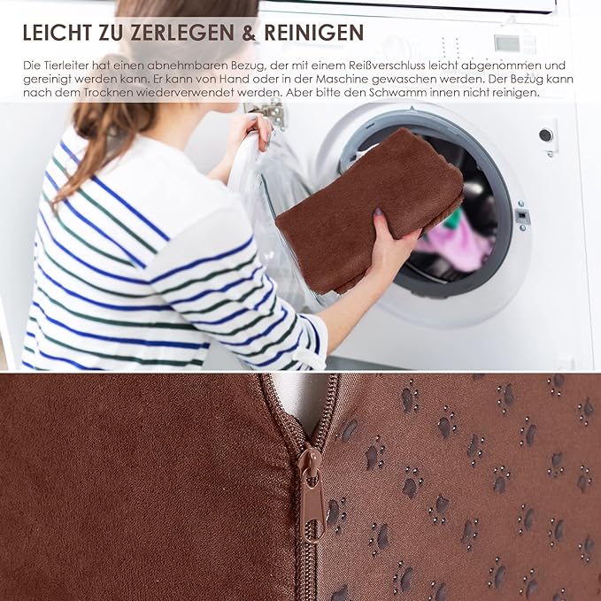- ثبات جيد - الطبقة الداخلية من سلم الحيوانات الأليفة مصنوعة من إسفنجة مرنة 30 وات، عالية الارتداد، ليس من السهل تشويهها، ونمط مخلب الكلب في الأسفل يمكن أن يلعب تأثير عدم الانزلاق. RPA202 32023 مواد عالية الجودة - غطاء القماش لسلالم الحيوانات الأليفة مصنوع من مادة حبل ناعمة، والسطح غير قابل للانزلاق، مما يزيد بشكل كبير من الاحتكاك بأقدام الحيوان الأليف، ولم يعد الحيوان الأليف ينزلق عند صعود ونزول الدرج.
