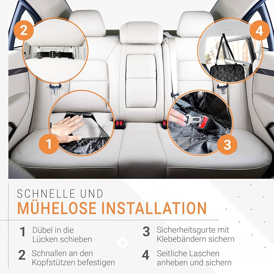 - All-round protection for the rear seats dog rear seat protection: the front and rear flaps of the car seat cover dog protect the back seats and the back of the front seats, while the side flaps additionally protect the doors. Your four-legged friend can still enjoy the view through the window while protecting the door material from dirt and scratches.