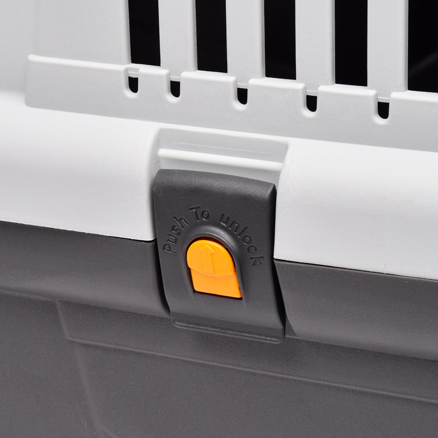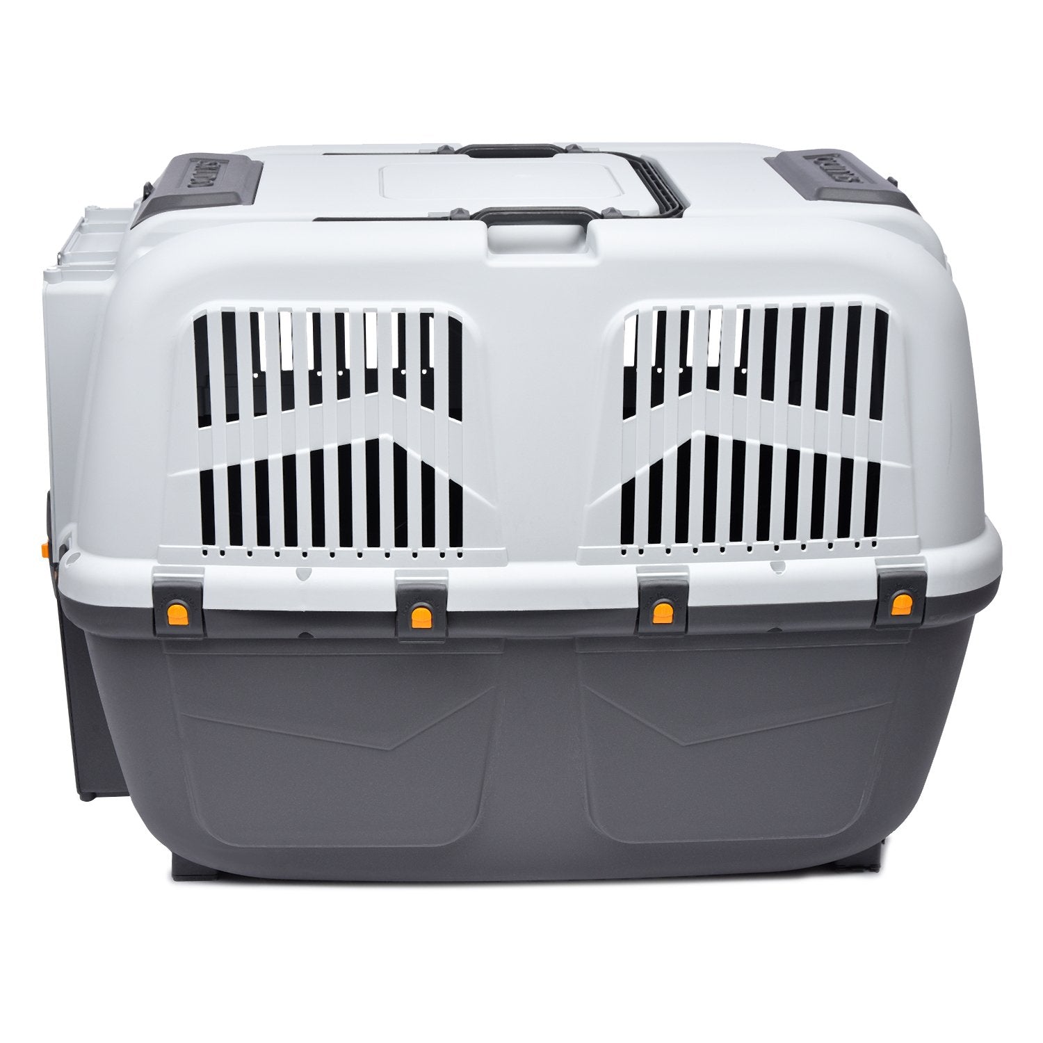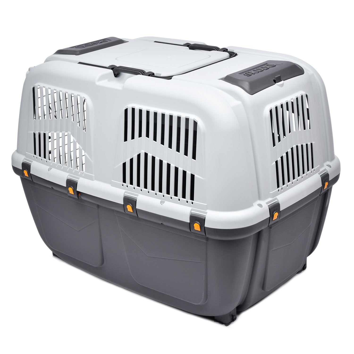 تم تصميم حاملة سكودو 6 المعتمدة من شركات الطيران لتسهيل نقل الحيوانات وجعل الرحلة أكثر راحة. القفص مصنوع من بلاستيك مقاوم للصدمات ويأتي بمقبض عملي في الأعلى. الباب مصنوع من معدن قوي بأقفال ذكية. مزود بفتحات تهوية حول محيط الحاملة لتدوير الهواء بشكل مثالي. يبلغ طوله 92 سم وعرضه 63 سم وارتفاعه 70 سم. يأتي باللون الرمادي.