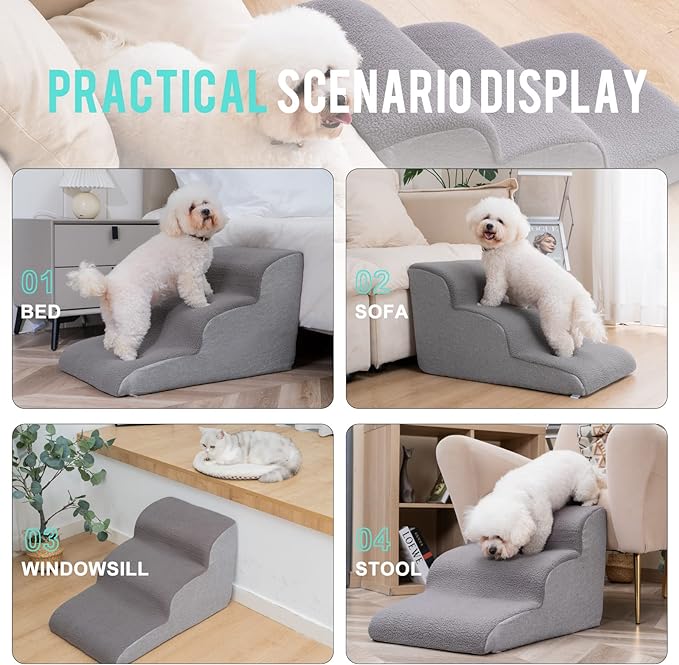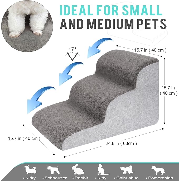 - 【سلالم الكلاب المنحدرة للكلاب الصغيرة】- سلالم الحيوانات الأليفة الخاصة بنا مختلفة عن درجات الحيوانات الأليفة التقليدية، حيث تعتمد على تصميم درجات مائلة مريحة بزاوية 17 درجة لتوفير مساعدة أفضل للكلاب التي تواجه صعوبة في الصعود والنزول من السرير وناعمة على مفاصلها. استخدم سلالم الحيوانات الأليفة الخاصة بنا، يمكن لحيوانك الأليف مثل الكلب أو القطة القفز على أو النزول من الأثاث مثل السرير والأريكة والأريكة بسهولة ولن تؤذي ركبته.