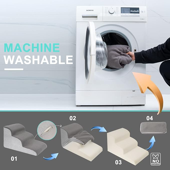 - 【سهلة الفك والتنظيف】- تحتوي سلالم الكلاب لدينا على سحاب ناعم على الجانب السفلي، مما يجعل من السهل إزالة غطاء سلالم الكلاب وغسله في الغسالة. يمكنك تنظيفه بانتظام لمنح حيواناتك الأليفة سلالم مريحة.