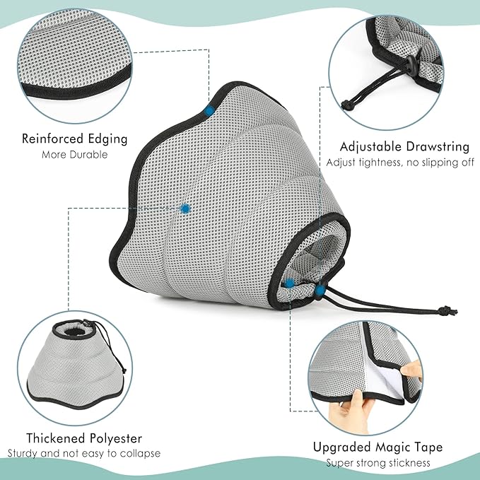 - 【مادة ناعمة قابلة للتنفس】: طوق التعافي للحيوانات الأليفة الخاص بنا مصنوع من البوليستر السميك، وهو متين، وليس من السهل تمزيقه ولكن من السهل طيه وتخزينه وحمله. الوسادة الناعمة الداخلية والخارجية مغطاة بمساحة كبيرة من الشبكة، وهي مريحة في الارتداء ولها نفاذية هواء جيدة، مما يتجنب الانزعاج أو حتى القلق للحيوانات الأليفة؛ يتمتع الطوق الناعم بصلابة جيدة ودعم قوي وليس من السهل طيه، مما يلعب دورًا وقائيًا حقًا.