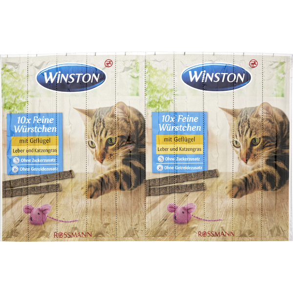 مصنوع من أفضل المكونات وبكل حب: نقانق فاخرة لقطتك - مصنوعة من مكونات لذيذة مثل الدواجن والكبد. عشب القطط الذي يحتويه غني بالألياف الطبيعية، والتي يمكن أن تساهم في رفاهية قطتك. مع هذه الوجبة الخفيفة اللذيذة، يمكنك بسهولة إظهار حبك لأحبائك بين الوجبات. يتم تغليف نقانق وينستون الفاخرة بشكل فردي وبالتالي فهي لذيذة بشكل خاص حتى آخر قضمة. بدون إضافة السكر والألوان تمامًا. جودة عن قناعة. من أجل حب وينستون.