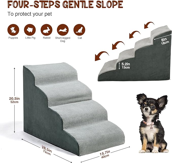 - ✔ تصميم مضاد للانزلاق ومستقر ✔: تستخدم سلالم الحيوانات الأليفة لدينا وسائد إسفنجية عالية الكثافة ومرنة 30D لا تتشوه بسهولة. كما أنها سهلة التركيب للغاية، فقط ضع الغطاء واسحبه. إنها مناسبة للجراء والكلاب قصيرة الأرجل (مثل الكلاب الألمانية والكورجية والباج والبلدغ) والقطط والكلاب المصابة والكلاب المسنة والأرانب الأليفة والخنازير الأليفة وما إلى ذلك.