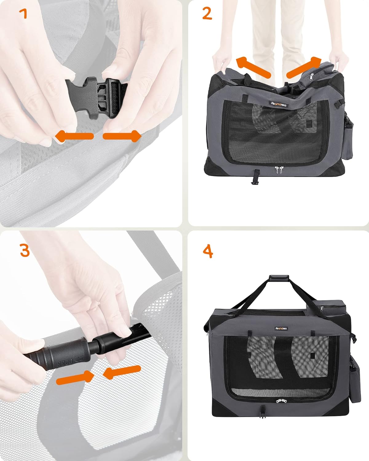 - [مناسب لسيناريوهات مختلفة] يوفر حامل الكلاب لصديقك ذي الأرجل الأربعة مكانًا آمنًا. يمكنك استخدام قفص الكلاب القابل للطي هذا عند التخييم، أو في المقعد الخلفي لسيارتك أثناء الرحلة، أو في الفندق أو في المنزل.