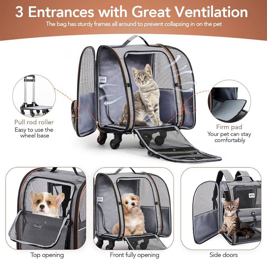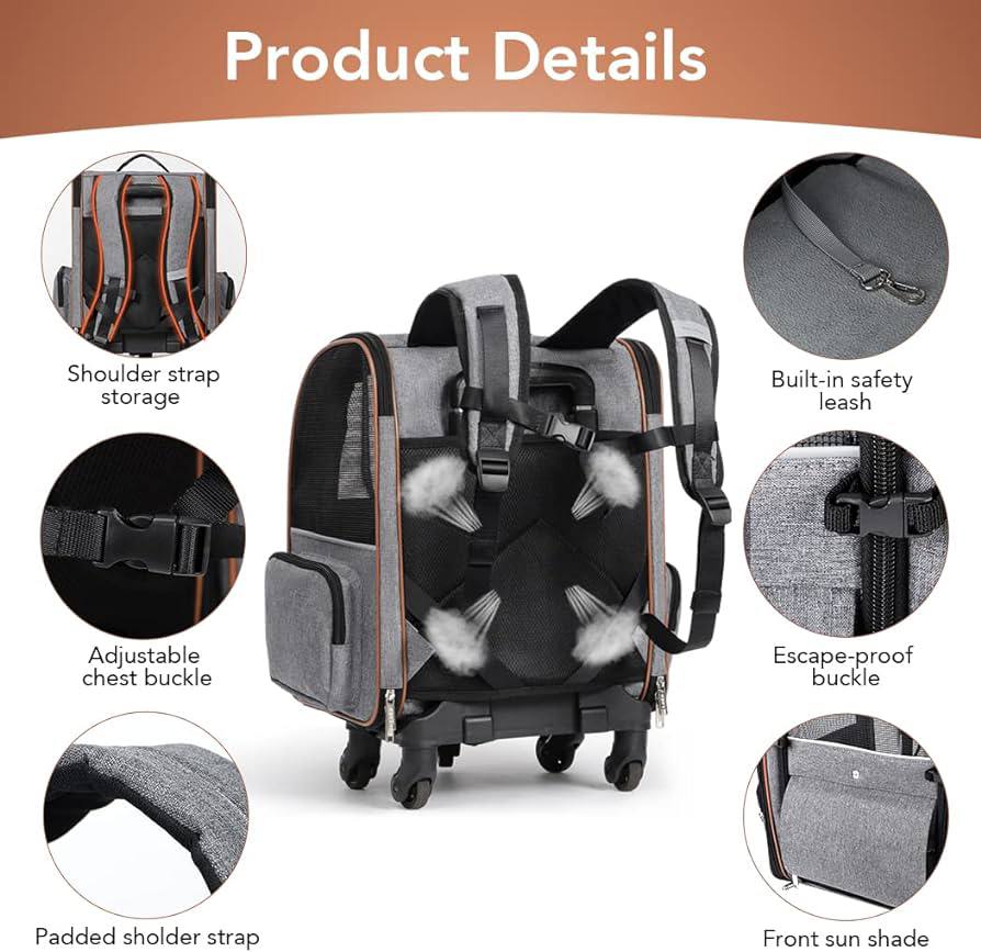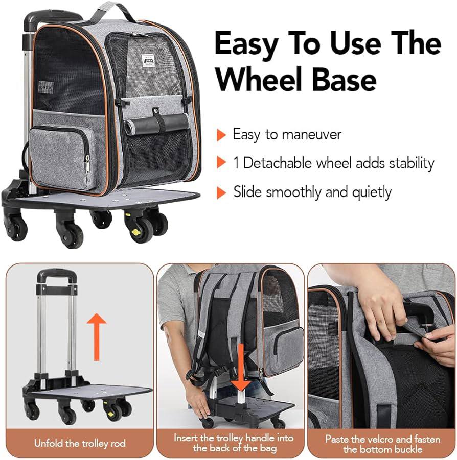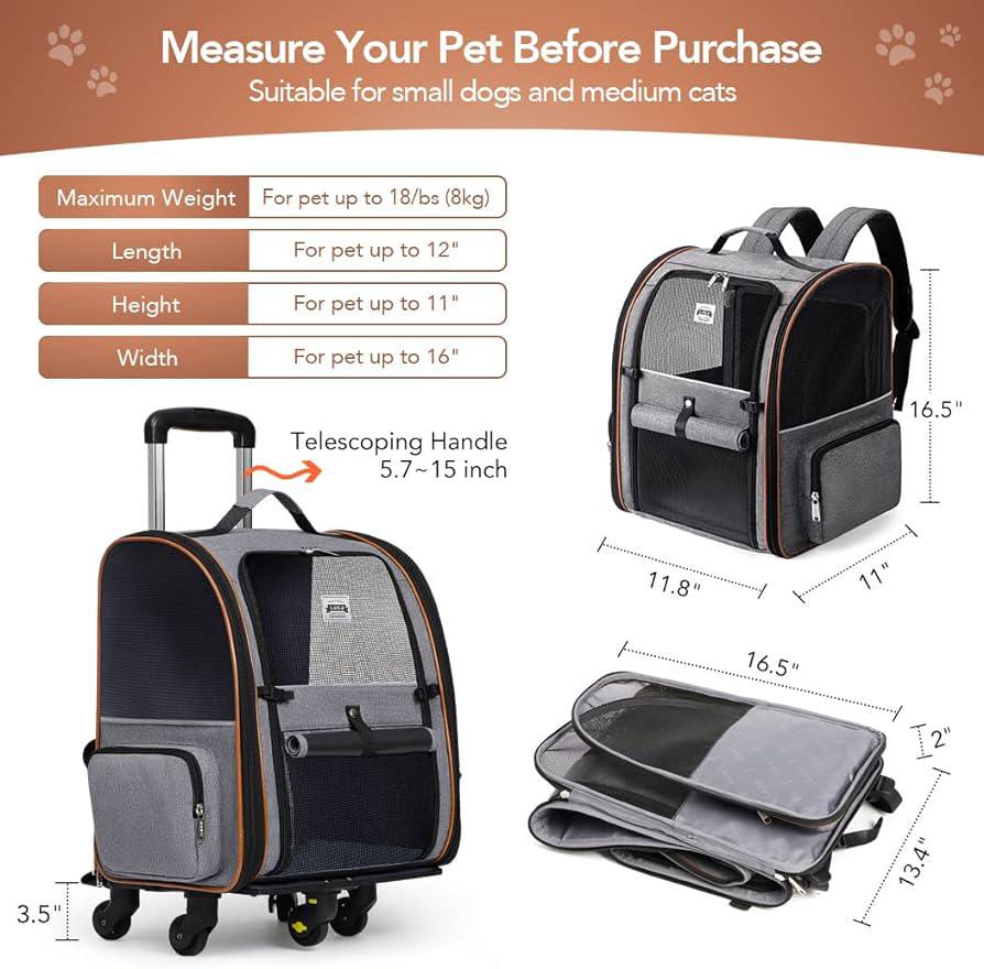 حقيبة ظهر لحمل الحيوانات الأليفة من Lekebobor للكلاب الصغيرة والقطط المتوسطة مواصفات المنتج: الخامة: بوليستر 300D حجم المنتج: 11.8x11x16.5 بوصة / 30x28x42 سم (طول × عرض × ارتفاع) معتمدة من شركات الطيران: تناسب المقعد السفلي لمعظم شركات الطيران. تتضمن العبوة: حقيبة ظهر. قاعدة عجلات قابلة للفصل. توفر السجادة القابلة للإزالة والمريحة مكانًا لطيفًا لراحة حيوانك الأليف. حزام أمان مدمج. المميزات: يمكن تحويل حقيبة ظهر الحيوانات الأليفة هذه بسهولة إلى حقيبة ظهر للراحة. تضمن طبقة تخزين الحزام عدم التصاق أحزمة الكتف بالعجلة عند استخدامها كحامل دوار. قضيب متين في الأعلى وإطارات قوية على كلا الجانبين تعمل على تثبيت الهيكل. يأتي مع حزام أمان داخلي لمنع الهروب. مصنوع من نسيج أكسفورد 300D المقاوم للتآكل والطارد للماء للاستخدام طويل الأمد. توفر تصميمات النوافذ الشبكية المتعددة تهوية جيدة. ظهر مبطن وأحزمة كتف وحزام صدر قابل للتعديل. 3 فتحات يمكن الوصول إليها بسهولة. يمكن لجيبين جانبيين تخزين الأشياء الصغيرة. يمكن سحب الستارة الدوارة للأسفل للحماية من الشمس. الحصائر الناعمة المتضمنة قابلة للفصل ويمكن غسلها في الغسالة. سهلة التركيب والطي، يمكنك توفير المساحة عند عدم الاستخدام. يرجى قياس حجم ووزن حيوانك الأليف قبل الشراء. يرجى ملاحظة: حقيبة ظهر مثالية لحمل الحيوانات الأليفة الصغيرة والمتوسطة الحجم، أقل من 18 رطلاً. ضمان ما بعد البيع: توفر جميع حقائب الظهر للحيوانات الأليفة من Lekebobor ذات العجلات ضمان استرداد الأموال لمدة 30 يومًا وضمان لمدة 180 يومًا للمشكلات المتعلقة بالجودة، وخدمة عملاء ودودة للرد في غضون 24 ساعة.