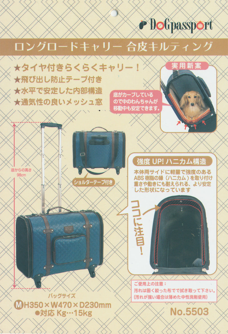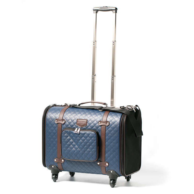 حقيبة حمل ذات عجلات يمكنها حمل كلب داشوند أو كلب صغير ذو جسم طويل.