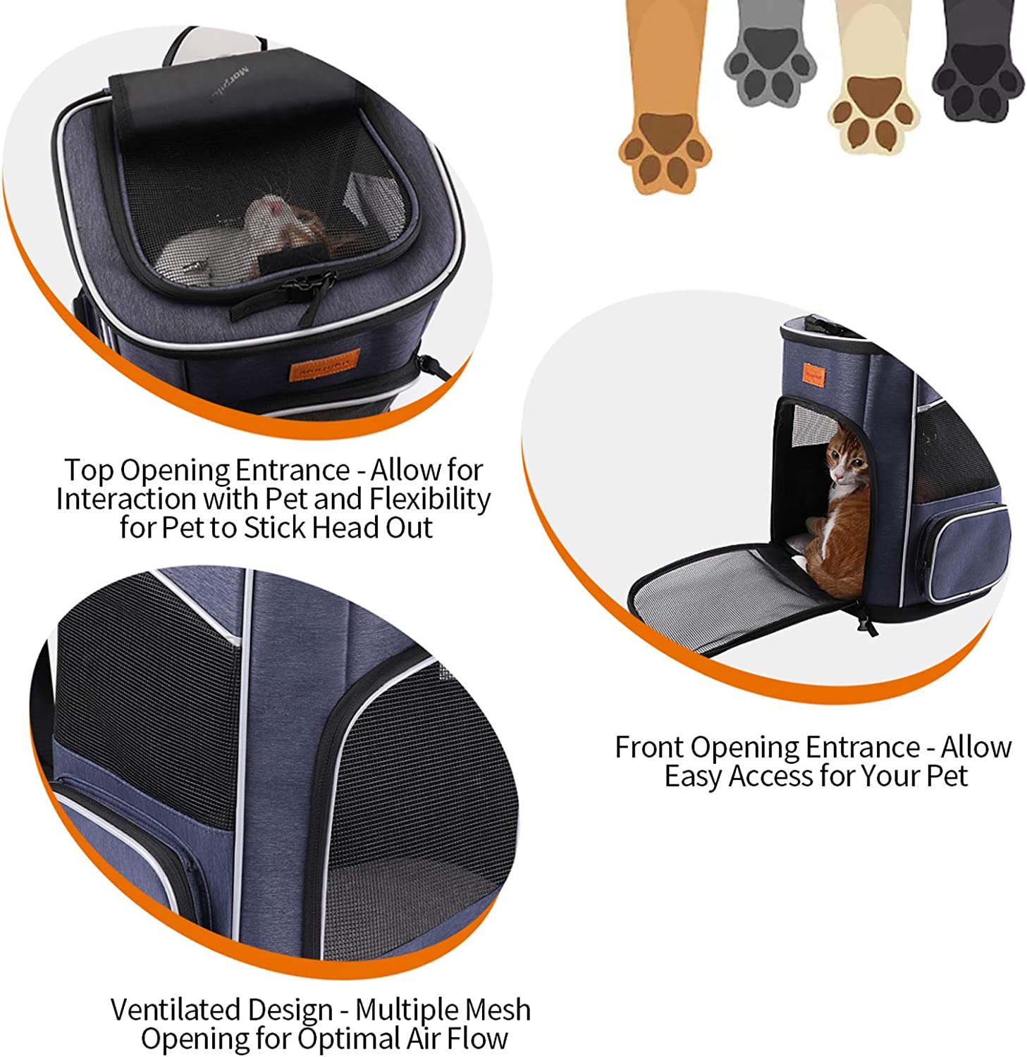 - 【تصميم تهوية مريح】: --- تعتمد حقيبة ظهر القطط هذه على إعداد شبكة تهوية بأربعة جوانب، مما لا يضمن فقط دوران الهواء في حقيبة ظهر الحيوانات الأليفة، بل يسمح أيضًا للحيوان الأليف بمراقبة البيئة المحيطة بوضوح، مما يجعل الحيوان الأليف أكثر راحة وأقل قلقًا. يمكن إبقاء الجزء العلوي من حقيبة ظهر الحيوانات الأليفة مفتوحًا للسماح للحيوانات الأليفة بالخروج من الرأس؛ يمكن طي المظلة ولصقها لتحسين التهوية أو يمكن وضعها بشكل طبيعي لمنع التعرض لأشعة الشمس.
