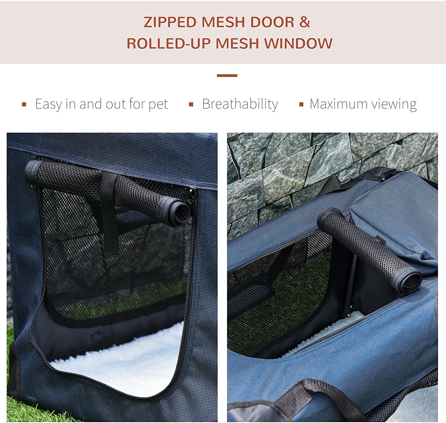 حقيبة حمل الحيوانات الأليفة القابلة للطي من PawHut، قفص ناعم محمول للكلاب والقطط والجراء مع أكياس تخزين مبطنة، أزرق داكن، 70 × 51 × 50 سم