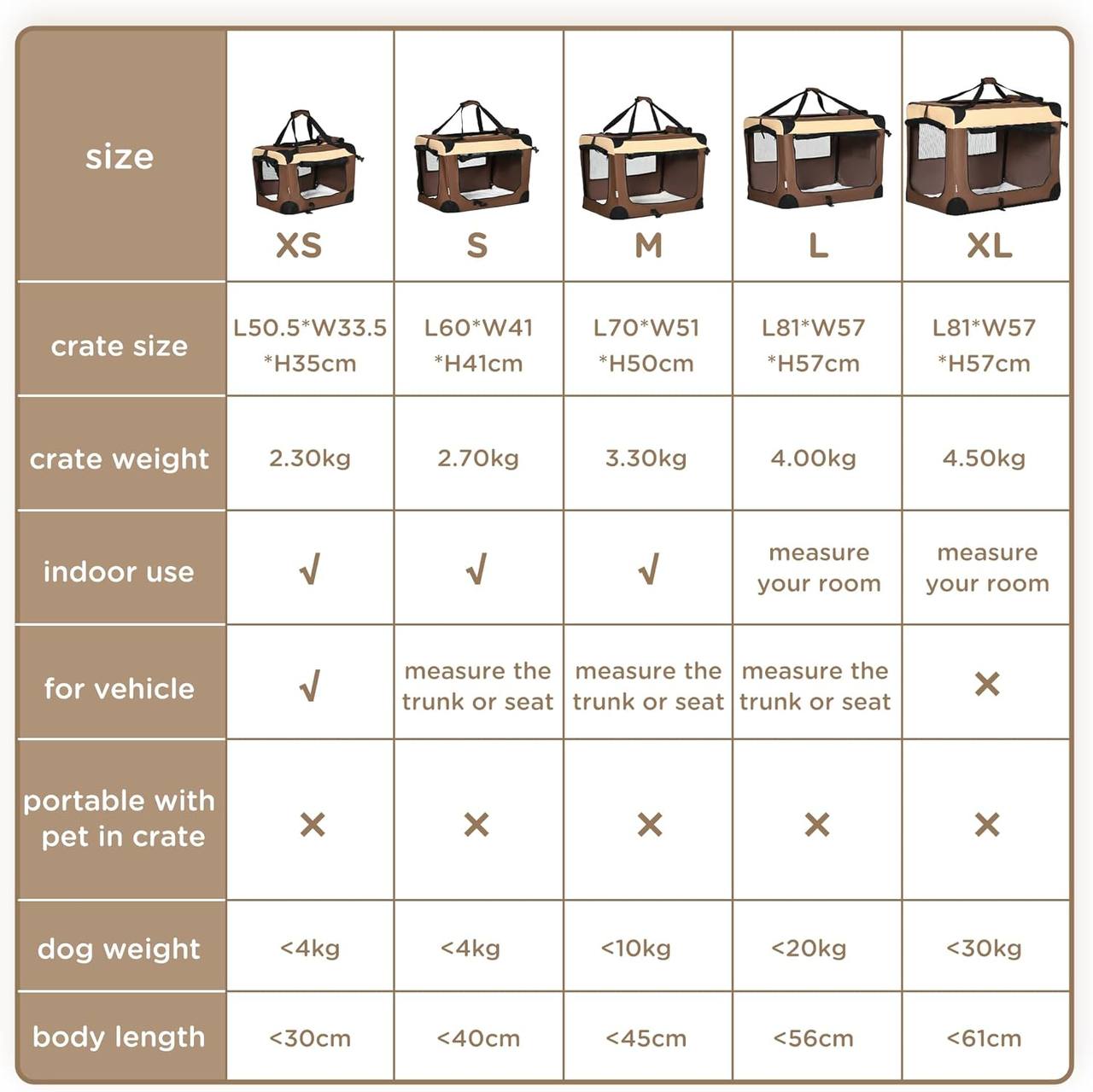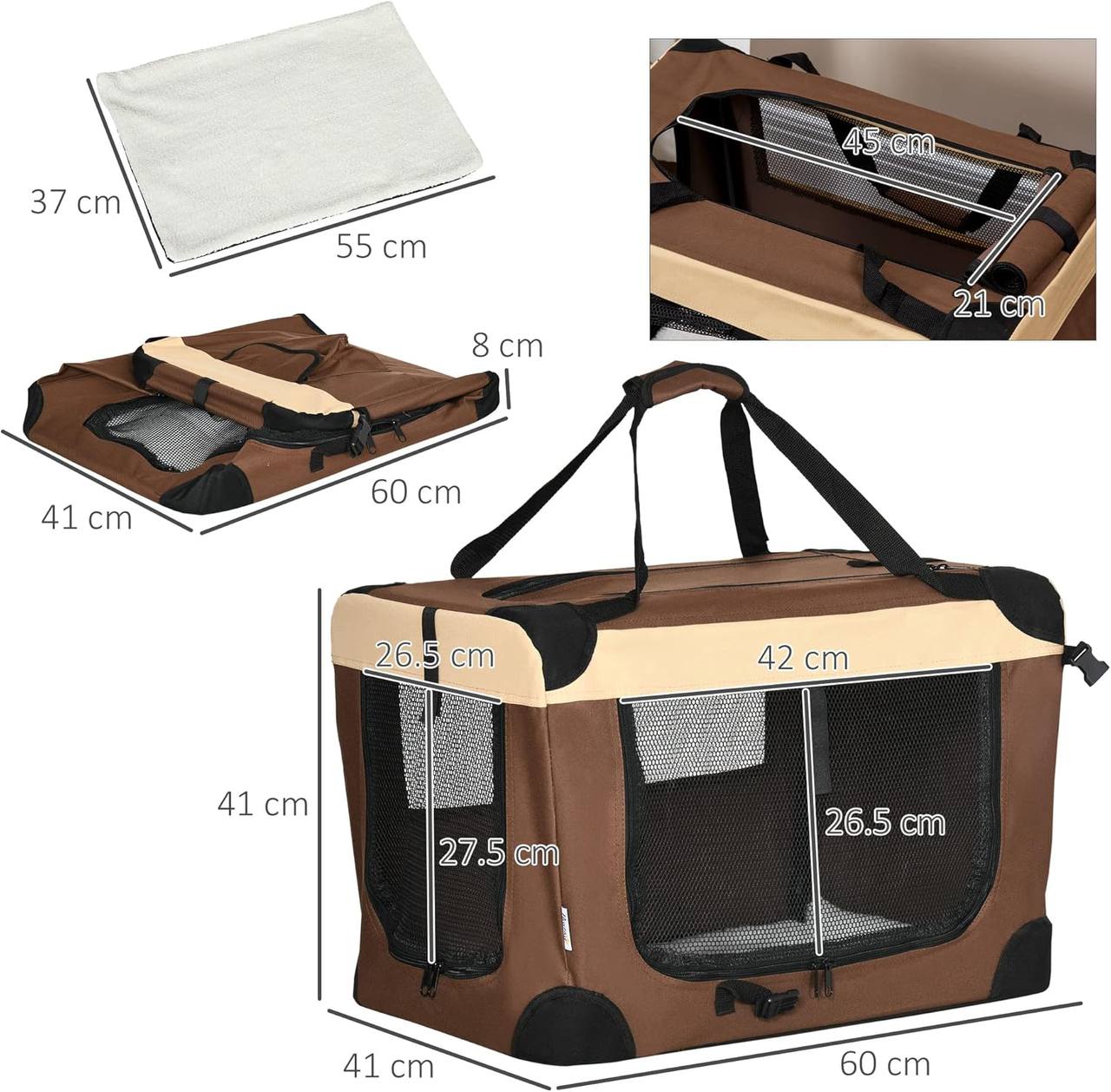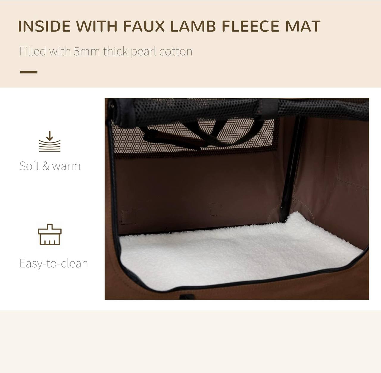 حقيبة حمل الحيوانات الأليفة القابلة للطي من PawHut قفص ناعم محمول للكلاب والقطط والجراء مع أكياس تخزين مبطنة، لون بني، 90 × 55 × 65 سم