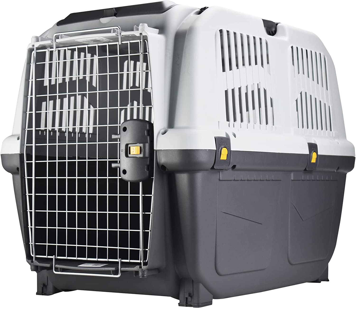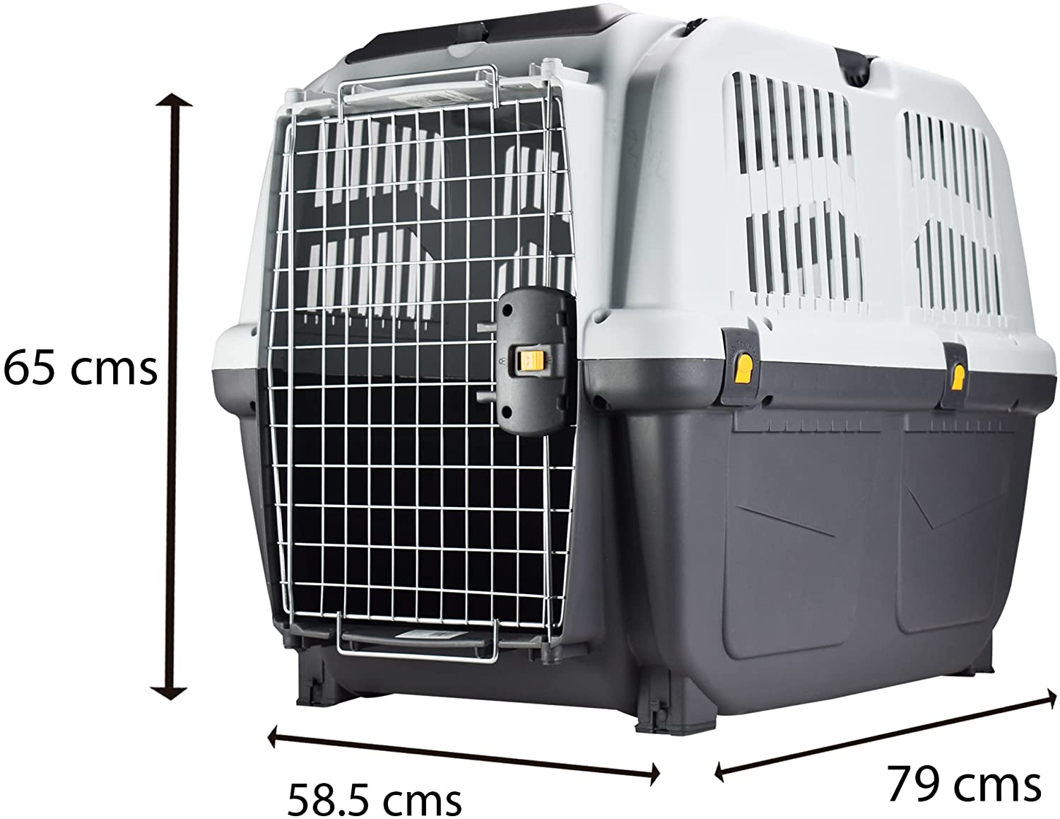 تم تصميم حامل تريكسي سكودو 5 المعتمد من شركات الطيران لتسهيل نقل الحيوانات وجعل الرحلة أكثر راحة. القفص مصنوع من البلاستيك المقاوم للصدمات ويأتي بمقبض عملي في الأعلى. الباب مصنوع من معدن قوي مع أقفال ذكية. مزود بفتحات تهوية حول محيط الحامل لتدوير الهواء بشكل مثالي. يبلغ طوله 79 سم وعرضه 58.5 سم وارتفاعه 65 سم. يأتي باللون الرمادي.